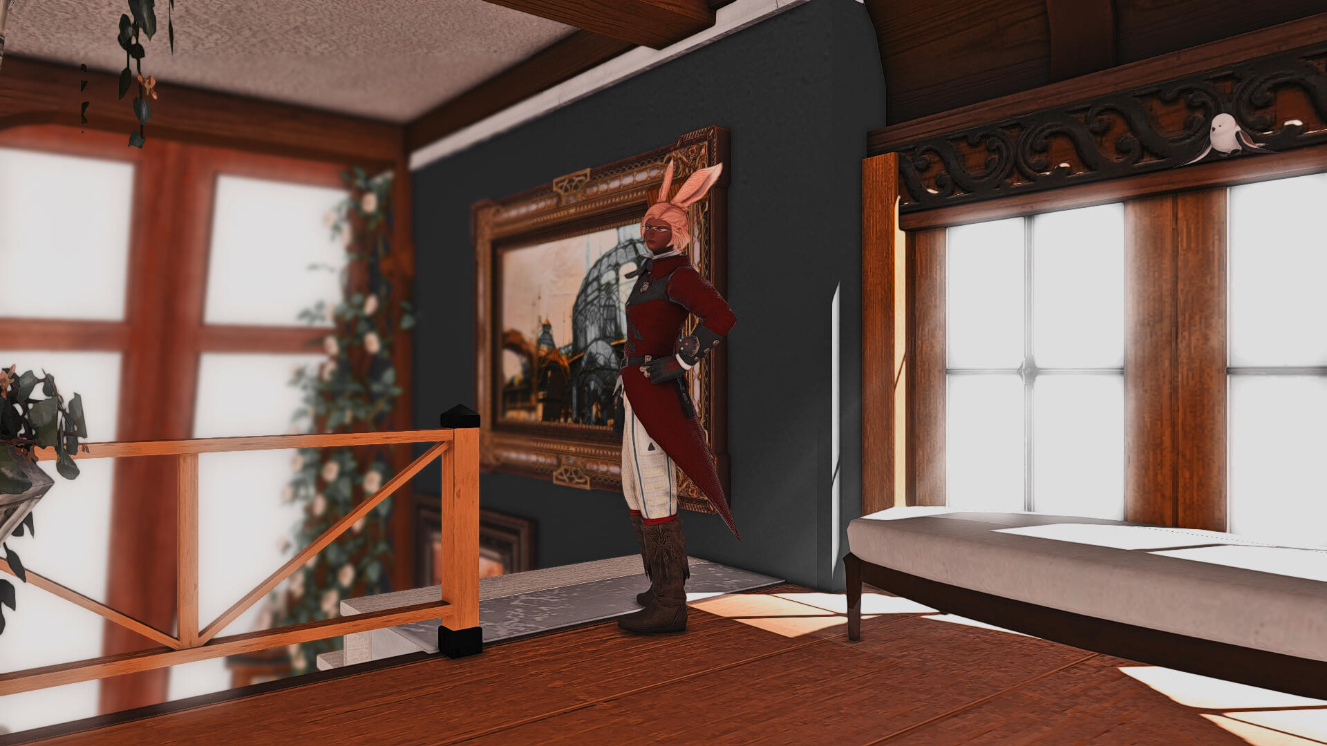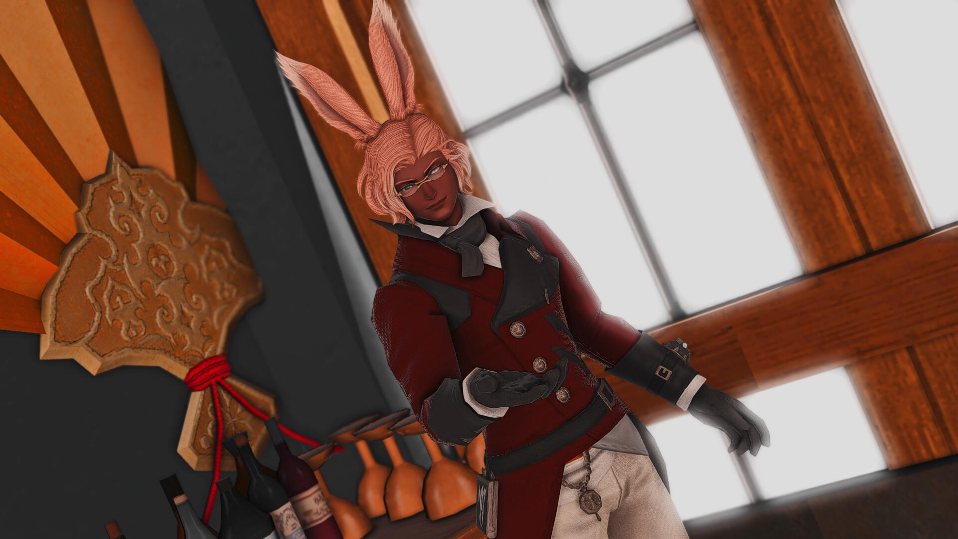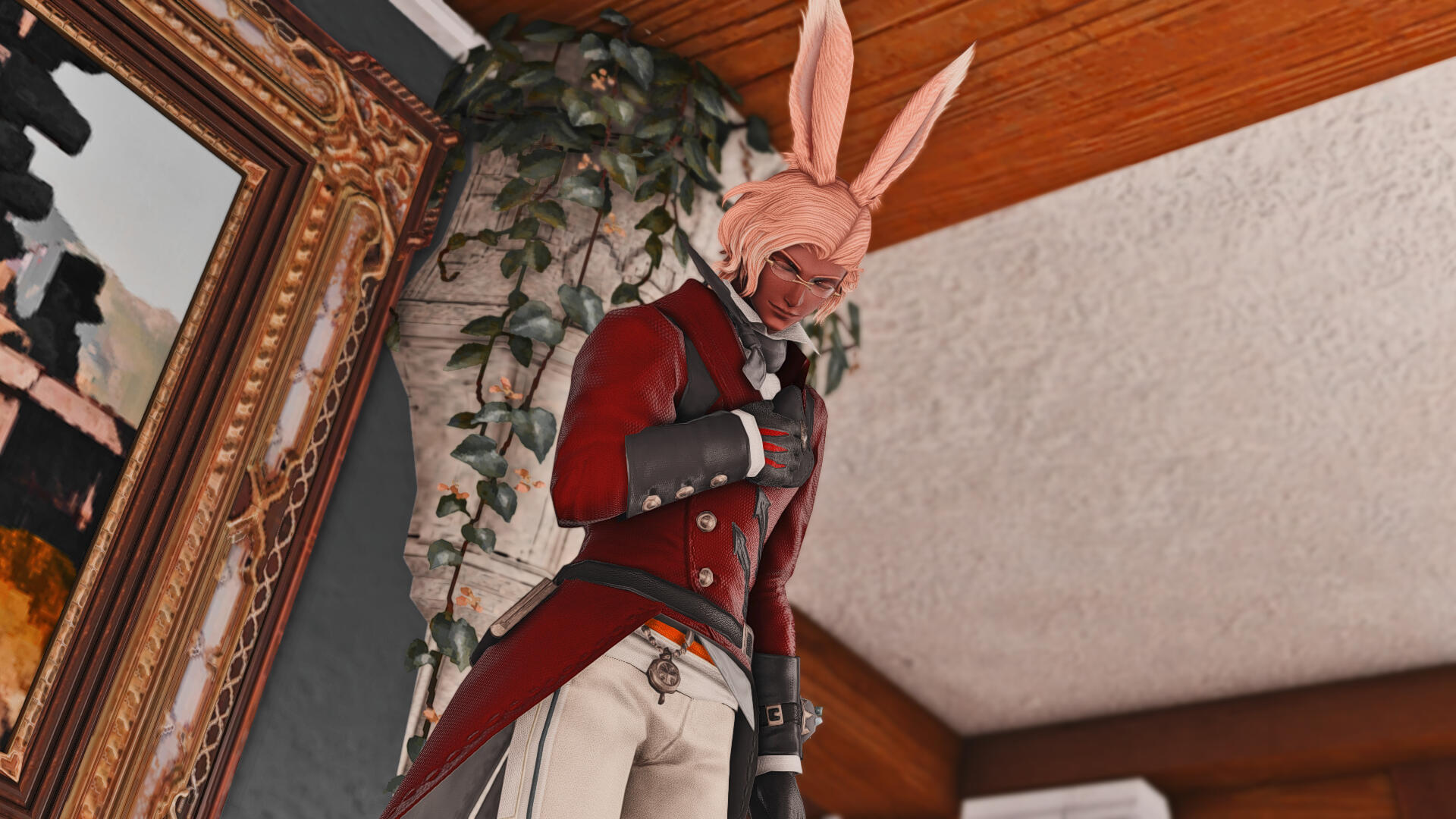 As you enter the office, you're met by the pleasant aroma of fresh flowers, a soothing melody playing on the orchestrion, and a well-dressed Viera standing by the reception desk.