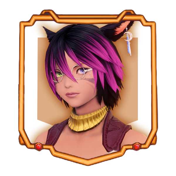 Formerly a hardworking housemaid in Ul'dah, this Miqo'te has struck out on her own to see the world -- and to be seen herself. Her cheerful demeanor hides a more world-weary heart, but music lifts everyone's spirits, right? A'yanthi has signed on with Lesalia in the hopes that her budding musical talents may be recognized...and to build up her travel funds again.
